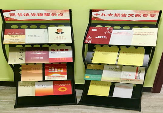 为了深入学习贯彻党的十九大精神,深学笃用习近平总书记新时代中国特色社会主义思想,营造浓浓烈烈、红红火火的“学习十九大,宣传十九大,贯彻十九大”的舆论氛围,区图书馆在宣传思想文化工作上高度重视,积极组织甄选了一批十九大重点主题读物,在全新整修的一楼报刊阅览室设立了党建工作服务点,开设了十九大报告文献专架,充分发挥图书馆的宣传阵地作用。