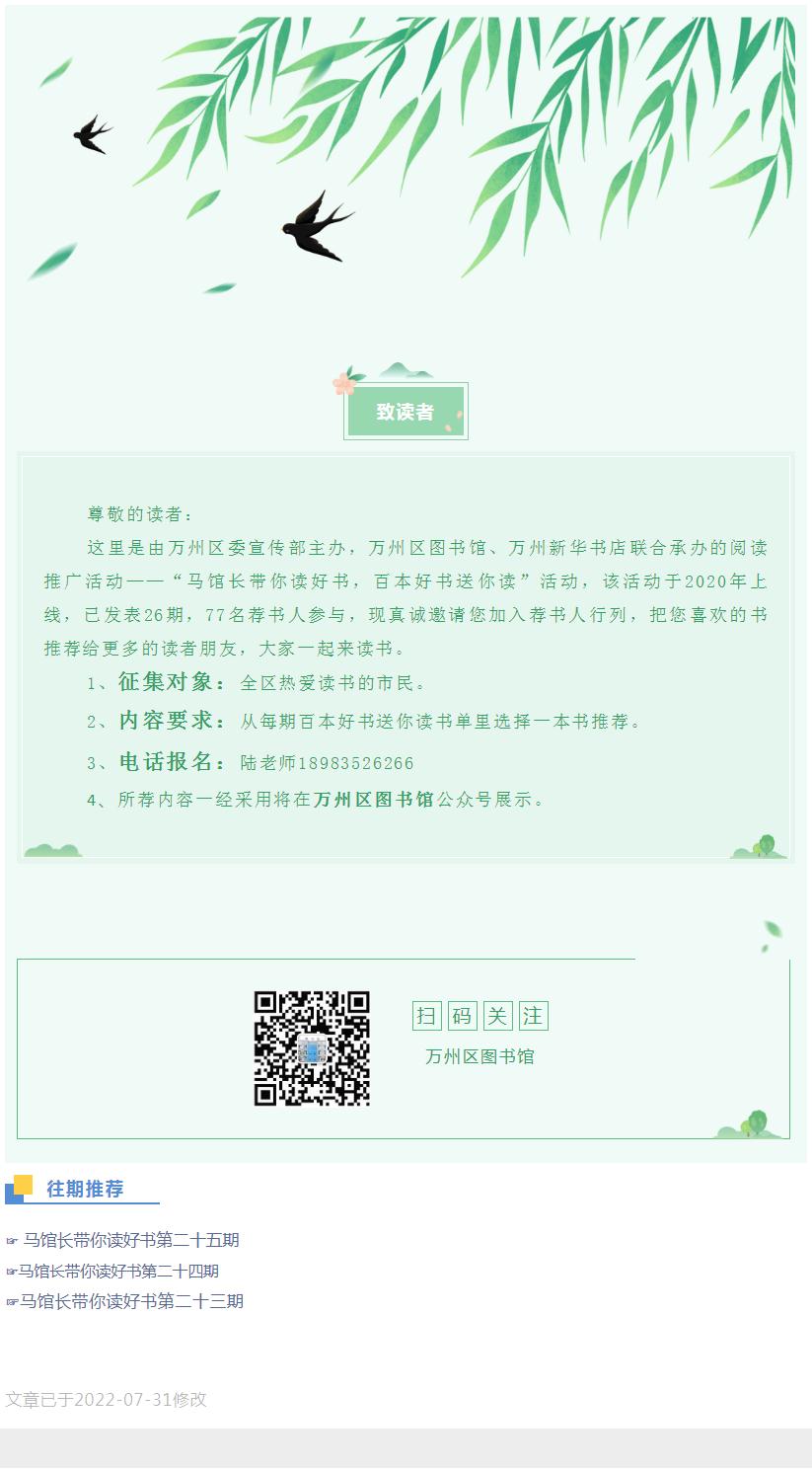 “马馆长带你读好书—荐书人”活动征集公告