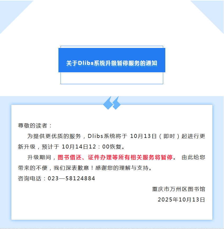 【重要通知】关于Dlibs系统升级暂停服务的通知