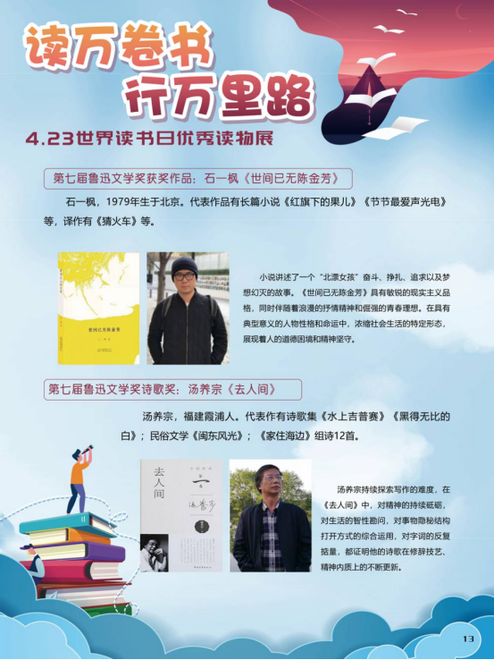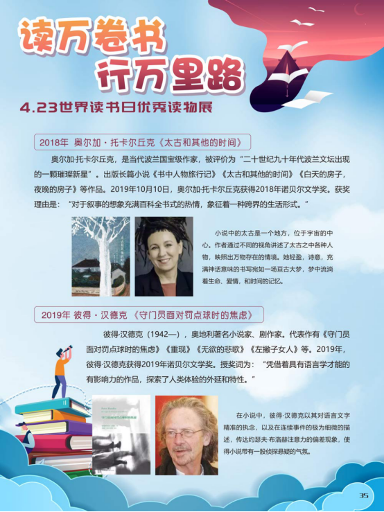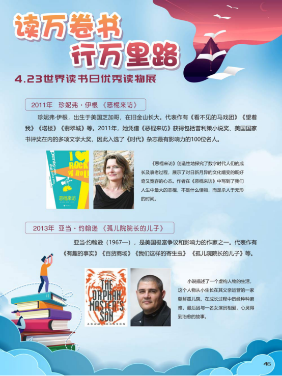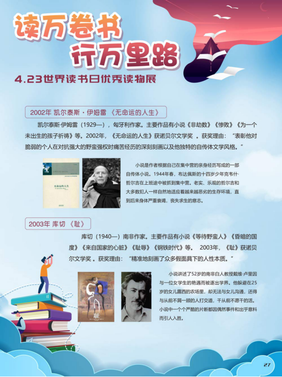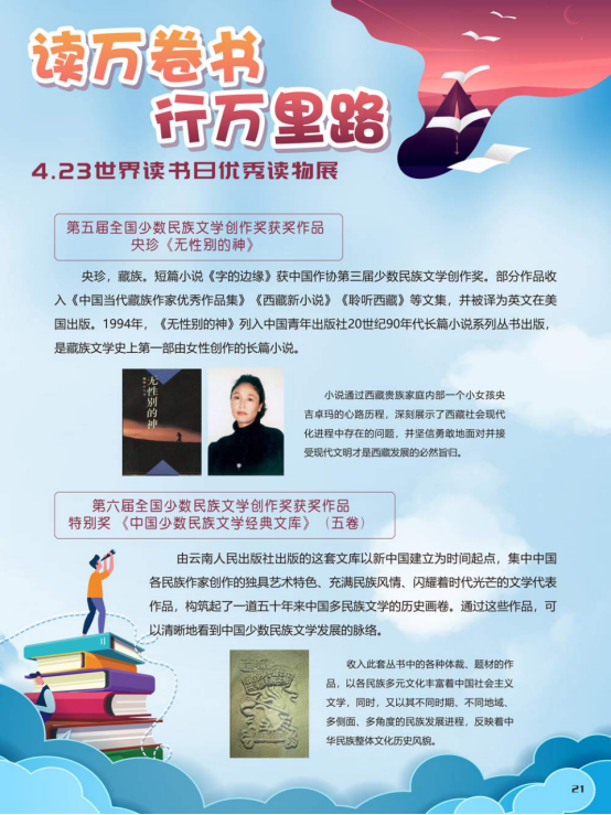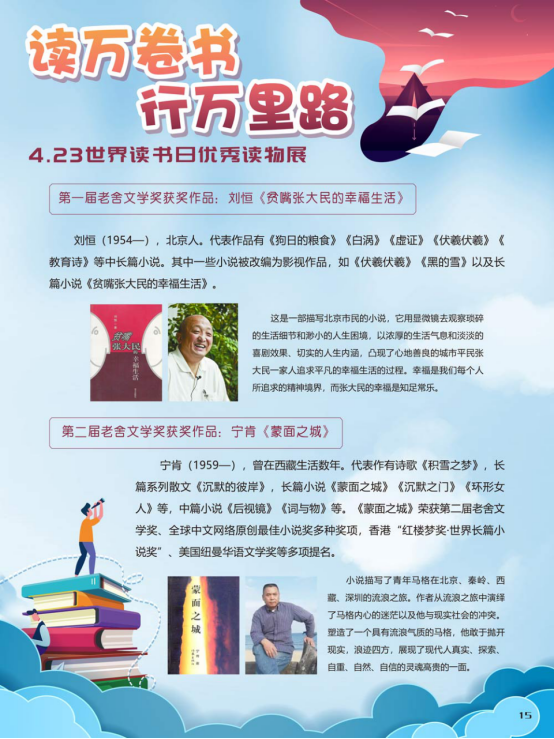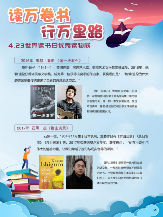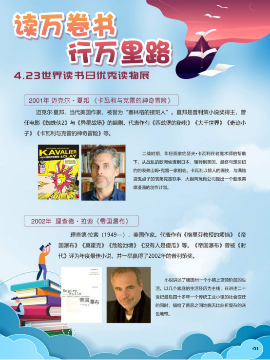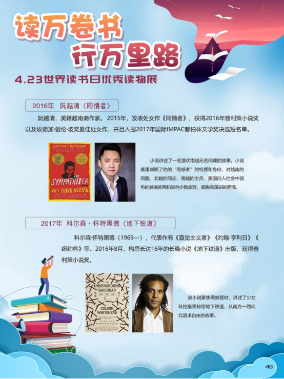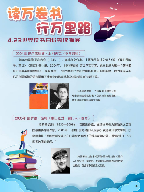 “世界读书日”全称为“世界图书与版权日”,是所有爱书人的节日。“世界读书日”最早起源于西班牙加泰罗尼亚。1923年,西班牙作家文森特·克拉维尔向加泰罗尼亚大区政府提出在西班牙设立读书日,以纪念塞万提斯及其伟大作品《堂吉诃德》。1926年,西班牙国王阿方索十三世设立了现代意义上的第一个读书日。1995年,联合国教科文组织将4月23日定为“世界图书与版权日”,又称“世界读书日”。“世界读书日”的设立目的在于推动更多的人去阅读和写作,希望所有人都能尊重和感谢为人类文明做出过巨大贡献的文学、文化、科学、思想大师们,保护知识产权。